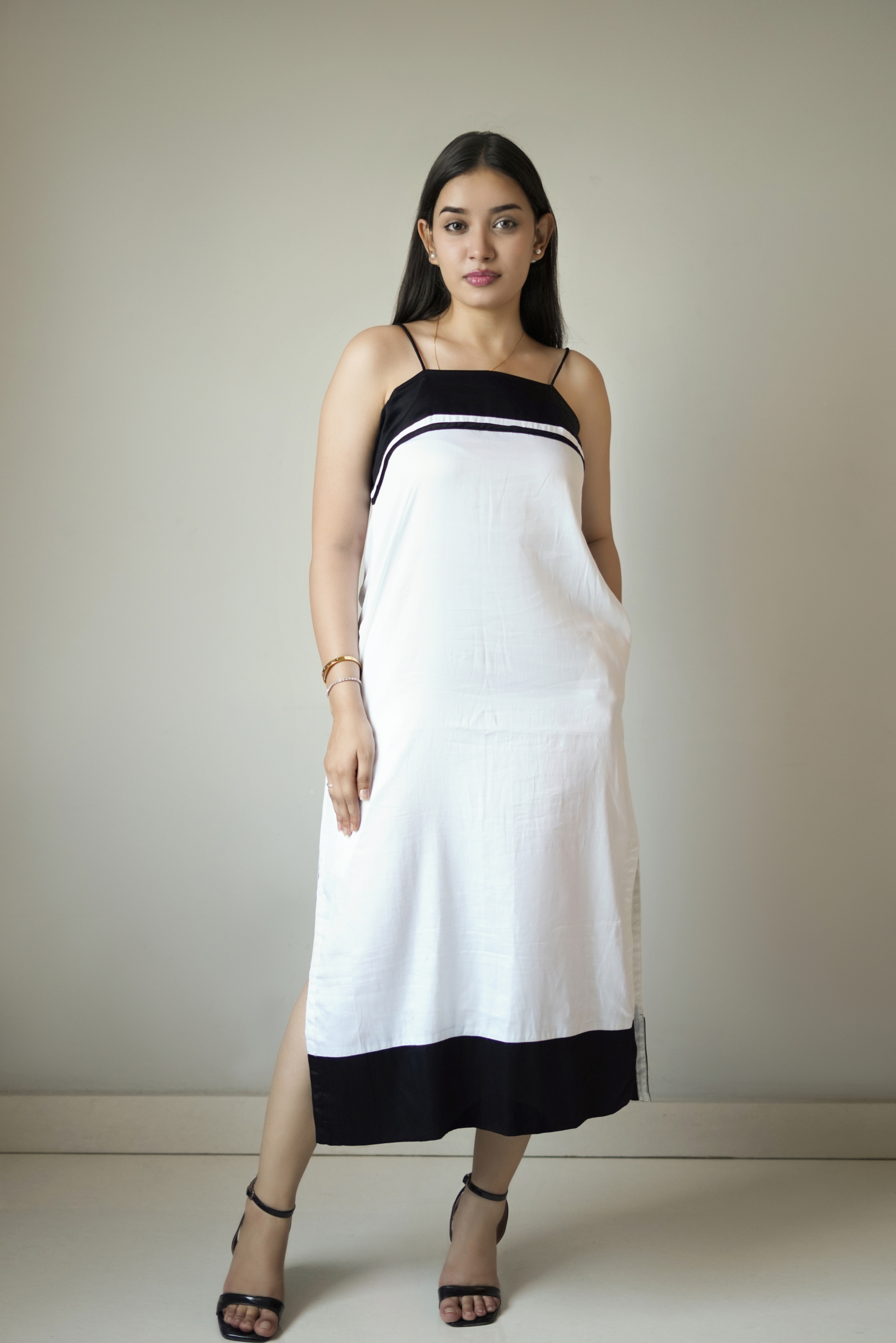 Black Border Spaghetti Shoulder One-Piece Dress