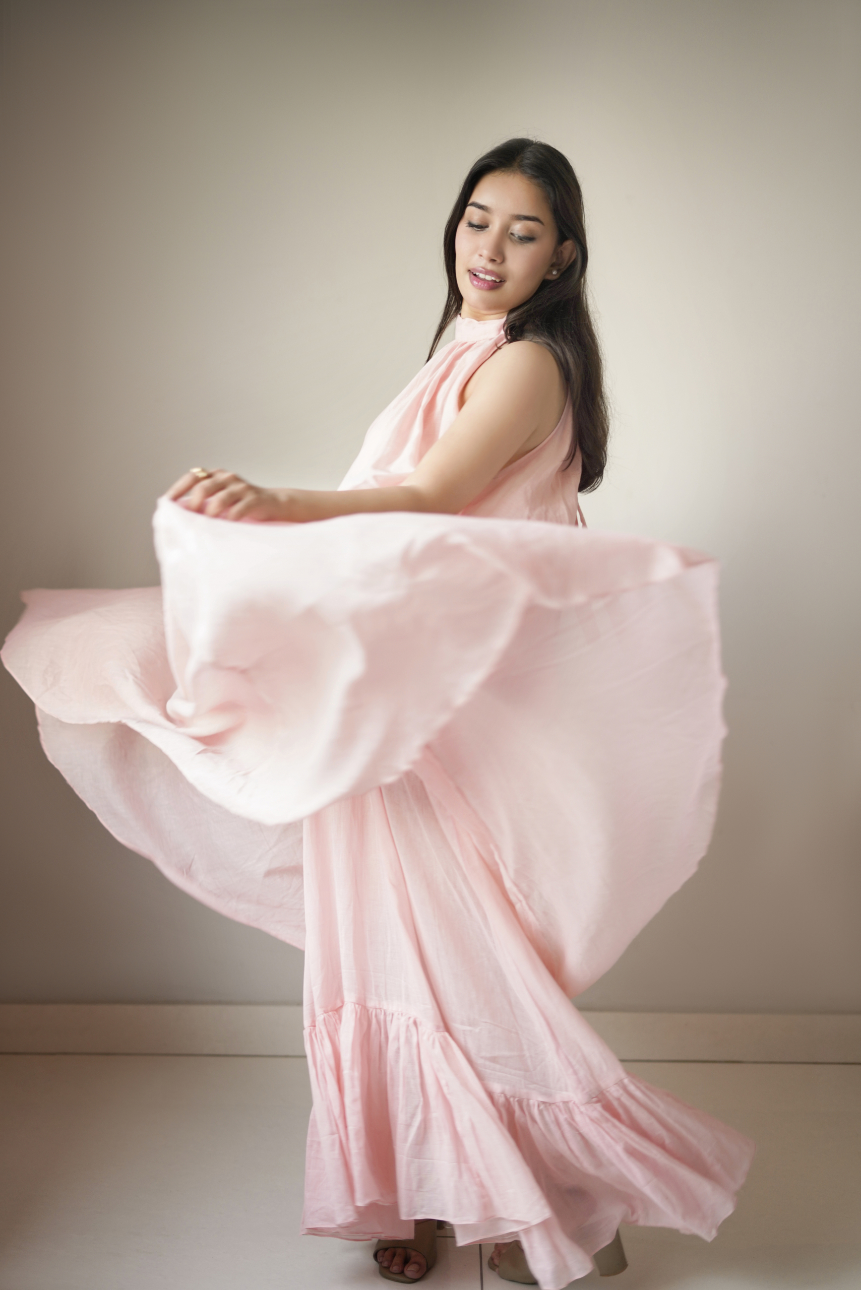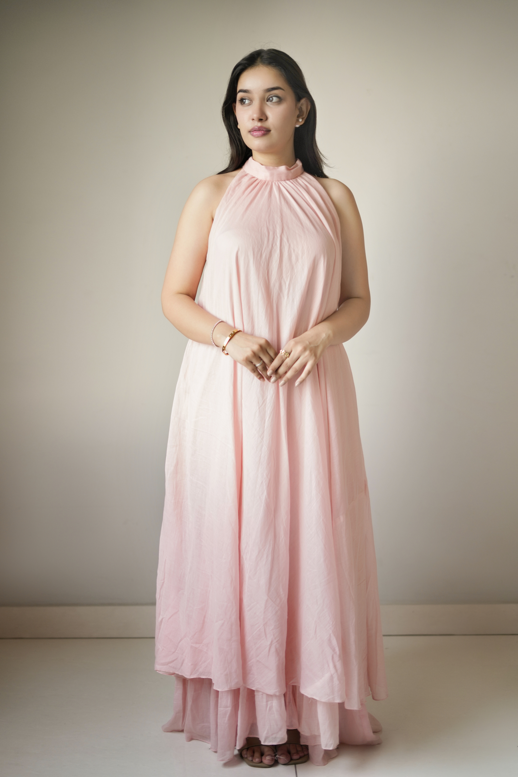 Soft, fluid, and endlessly elegant, the Blush Breeze Maxi is designed for moments that call for quiet beauty and effortless movement. Crafted in lightweight, breathable fabric, this maxi dress features a graceful halter neckline that gently frames the shoulders while allowing the silhouette to fall freely and naturally. The layered flow of the dress creates a dreamy, airy effect, catching the light and moving beautifully with every step.