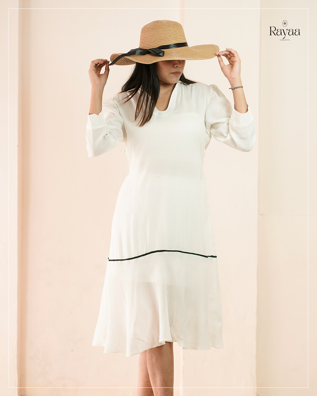 The Classic Statement Midi is a timeless blend of refined elegance and modern structure, designed for those who appreciate subtle detail with lasting impact. Crafted in a soft ivory tone, this midi dress is elevated by bold contrast accents that frame the silhouette beautifully, lending a polished and intentional finish.