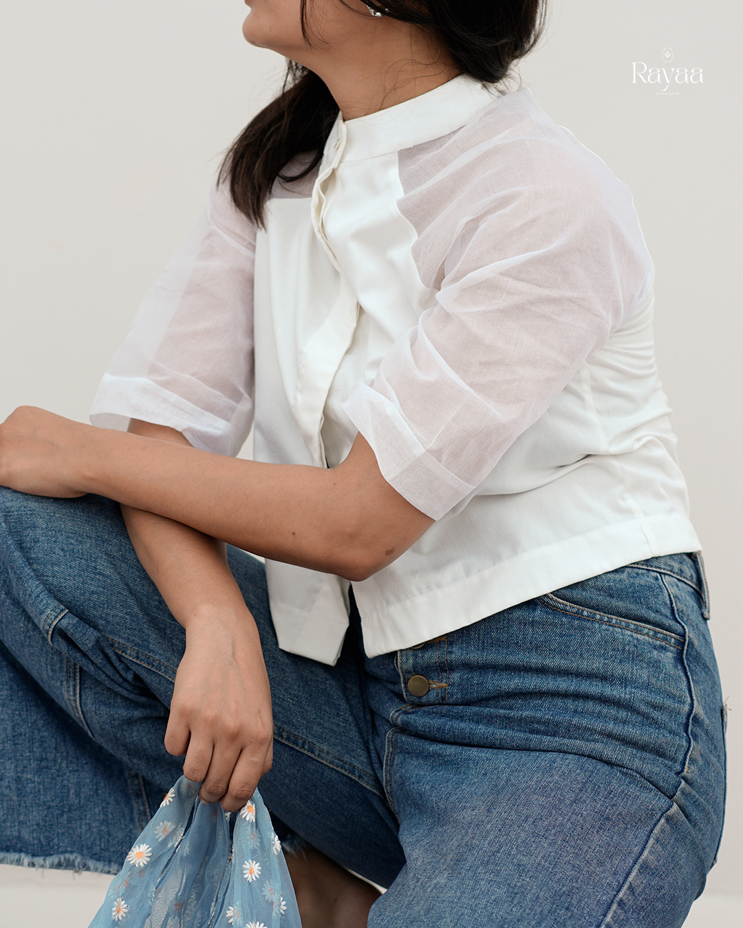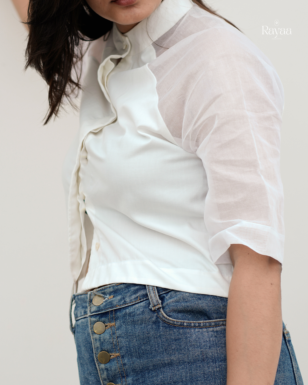 Elevate your wardrobe with this stylish front-buttoned shirt, designed to offer a unique and designer experience for anyone who wears it. This short shirt features transparent sleeves, adding a modern and sophisticated touch to a classic design. Made from 100% cotton, it ensures breathability and comfort, making it perfect for any occasion, whether it’s a casual day out or a chic evening event. The versatile design pairs beautifully with jeans or trousers, allowing for endless styling possibilities. This shirt is ideal for those who appreciate a blend of classic elegance and contemporary fashion.
